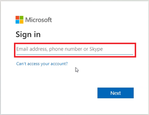 If prompted, enter your work or school email, then click on ‘next’ to continue.