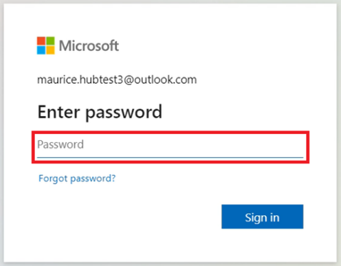 - Enter the password for the work or school email you entered earlier, then click on ‘Sign in”.